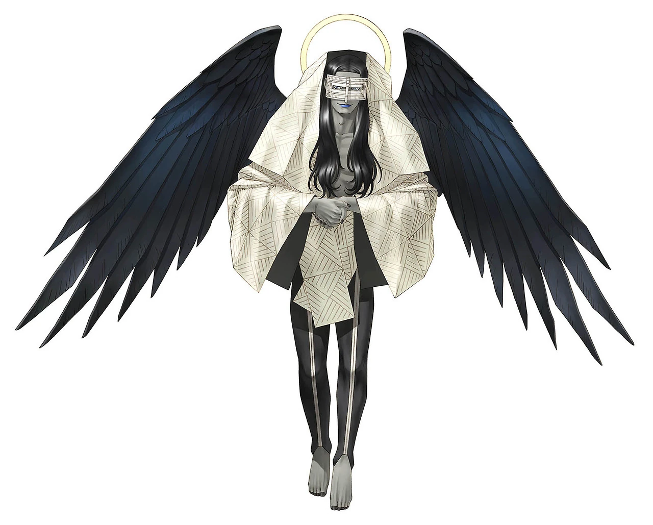 Black and red energy explodes out of it, changing it into an angelic figure. Its backup undergoes a similar transformation, becoming a spearman and beast.]
